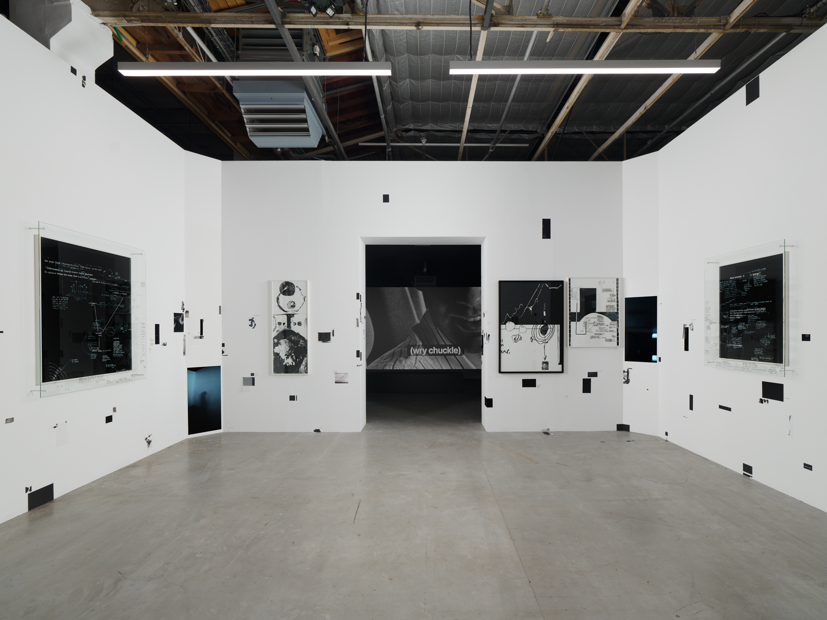 Video (3 count); Vinyl; Acrylic Paint; Xeroxes; Tape; Plexiglass; Mirrors; Acetate; Vellum; Archival Inkjet Prints