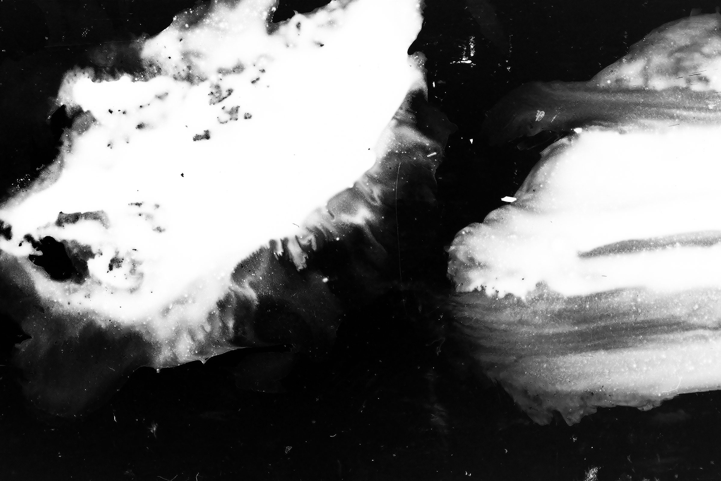 The series on view here, entitled Spirit, incorporates abstract shapes, markings, and gestures that border on visual glossolalia, asemics, and automatic writing. To create this series of prints, Rasheed has painted and written directly onto the surface of leader film, then photographed these semi-wet compositions while jostling them under the light of a lo-fi digital film scanner. The materiality of wet pigment and the gestures of movement result in photographs that dance between different registers of legibility. Focusing on covert spiritual and revolutionary practices of the South and the Caribbean, Rasheed engages with elements of spirit photography, translation, and dreams to create a constellation of images that consider the limits of legibility.